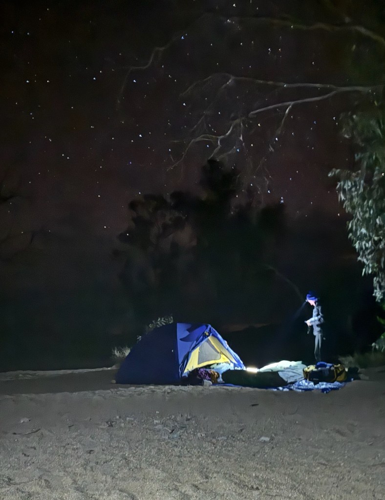 We got into camp at a very civilised 1.30pm. I enjoyed a paddle (which doubled as a bit of a wash) in the Finke River, read a book in the sun, made breakfast of nutella croissants and hard-boiled eggs, and packed for the next day’s walk up Mount Sonder. This was to be a 2.25am departure to get to the top before sunrise, and we were told to take all our warm clothes as it would be baltic at the top. Eep!