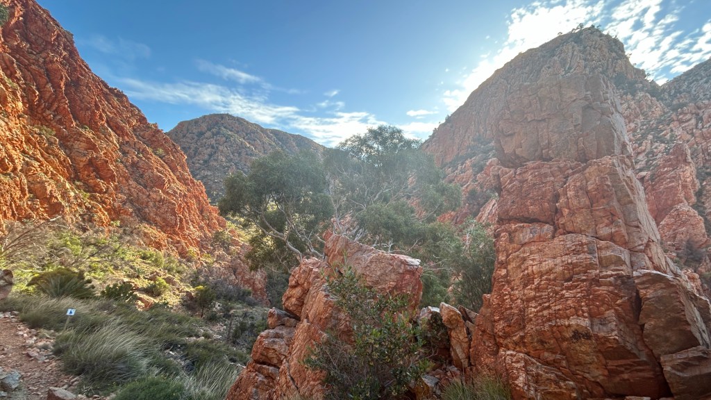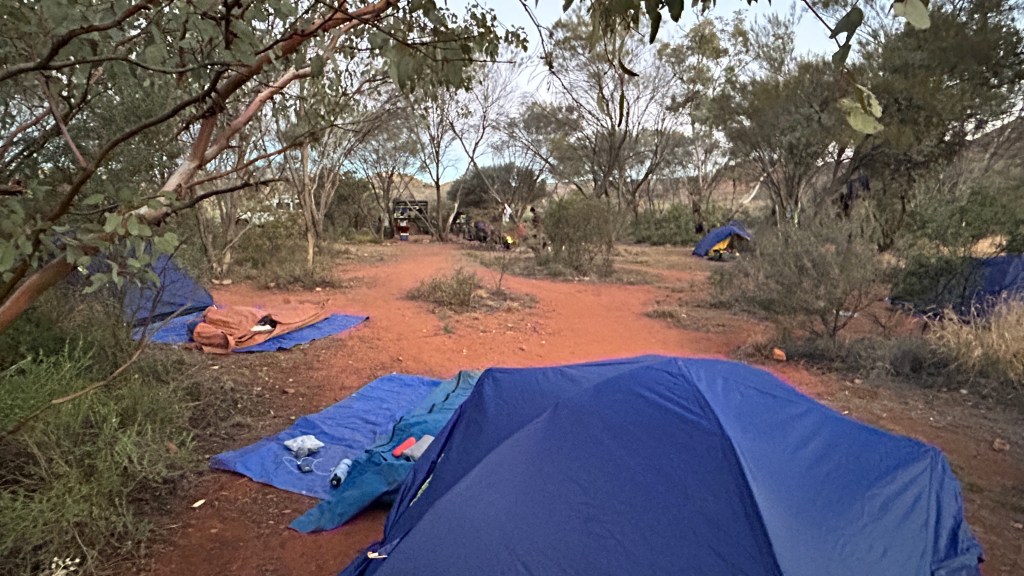 Today was a much, much more relaxed day, but started with a very cold night. Apparently it was -2 degrees in Alice and it would have been colder out here – my water bottle had frozen bits in it and the toilet hand wash bucket was frozen across the top when I went to use it first thing, and I needed to bash it with a hiking pole to wash my hands!