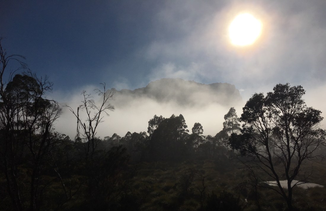 I was lucky in a lot of ways. The weather was rubbish for the first two days but then glorious, including on the all-important day four when we climbed Mt Ossa in perfect conditions. The guides and the group were just brilliant. There can be up to twelve in a group but in ours just five, and not only that but we were pretty evenly matched in terms of pace. I was worried that my slow, steady and stubborn style of walking would see me consistently left behind, but this was only really the case on the last day when I felt pretty unwell. Three of the group were kiwis who’ve lived in Australia for a long time, and they’ve given me some great ideas for more walking in both countries. The guides, Sanjay and Silas, were two guys in their 20s who are knowledgeable and passionate about the national park and its geology, flora, fauna and history, and who enjoyed sharing this with their guests. They also had a great sense of humour and, perhaps most importantly, were fantastic cooks.