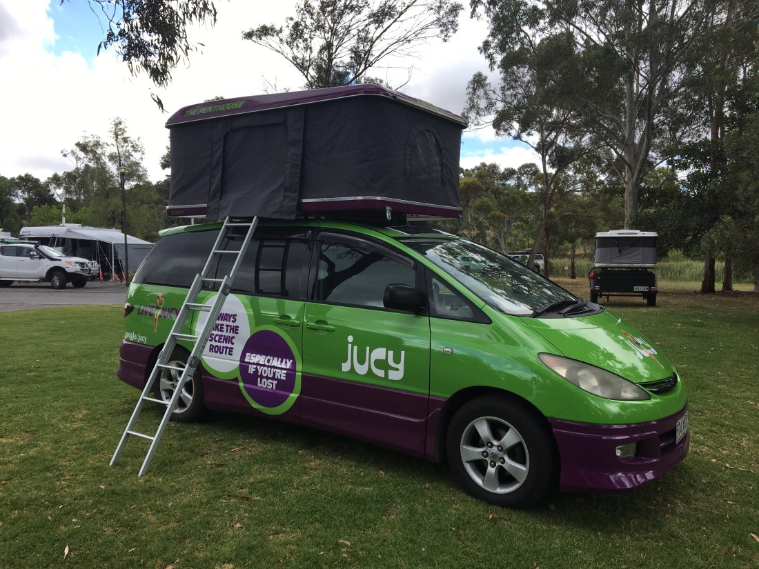 This week has involved a new experience for me – hiring a campervan. It struck me as the most cost-effective way to “do” Kangaroo Island, a scenic wildlife hotspot off the coast two hours’ drive south of Adelaide, being only slightly more expensive than a car to hire, and allowing very cheap campsite accommodation without buying a tent. A bit of online research back in the UK led me to Jucy, a kiwi company whose vans are distinctively green and purple. So nobody will be missing me as I tear up the South Australian highways!
